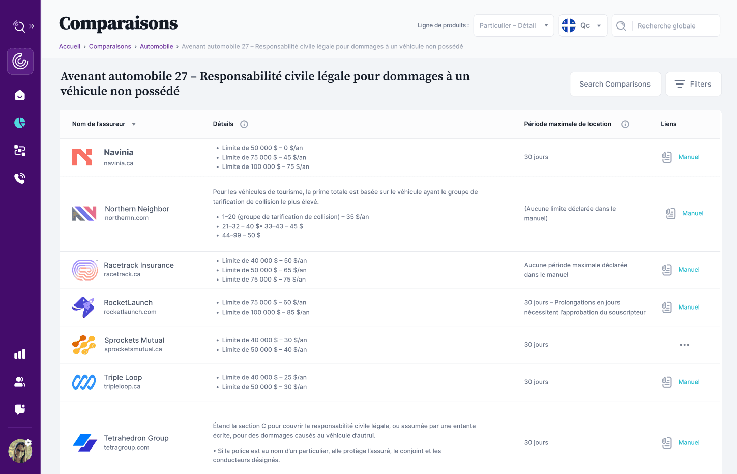 La plateforme QuickFacts Comparaisons regroupe l’ensemble des informations de souscription d’un cabinet de courtage provenant de tous ses partenaires assureurs au sein d’une seule interface. Cette centralisation réduit considérablement la collecte manuelle de documents et les comparaisons manuelles, diminue le temps d’intégration des nouveaux courtiers, et a permis une réduction de près de 50 % des appels aux équipes de souscription des assureurs. Ces gains d’efficacité favorisent un service plus rapide, une capacité de vente accrue et permettent aux gestionnaires de se concentrer sur les initiatives stratégiques. Les courtiers rapportent une amélioration notable de leur satisfaction au travail, tandis que les clients bénéficient d’une expérience plus transparente et cohérente.