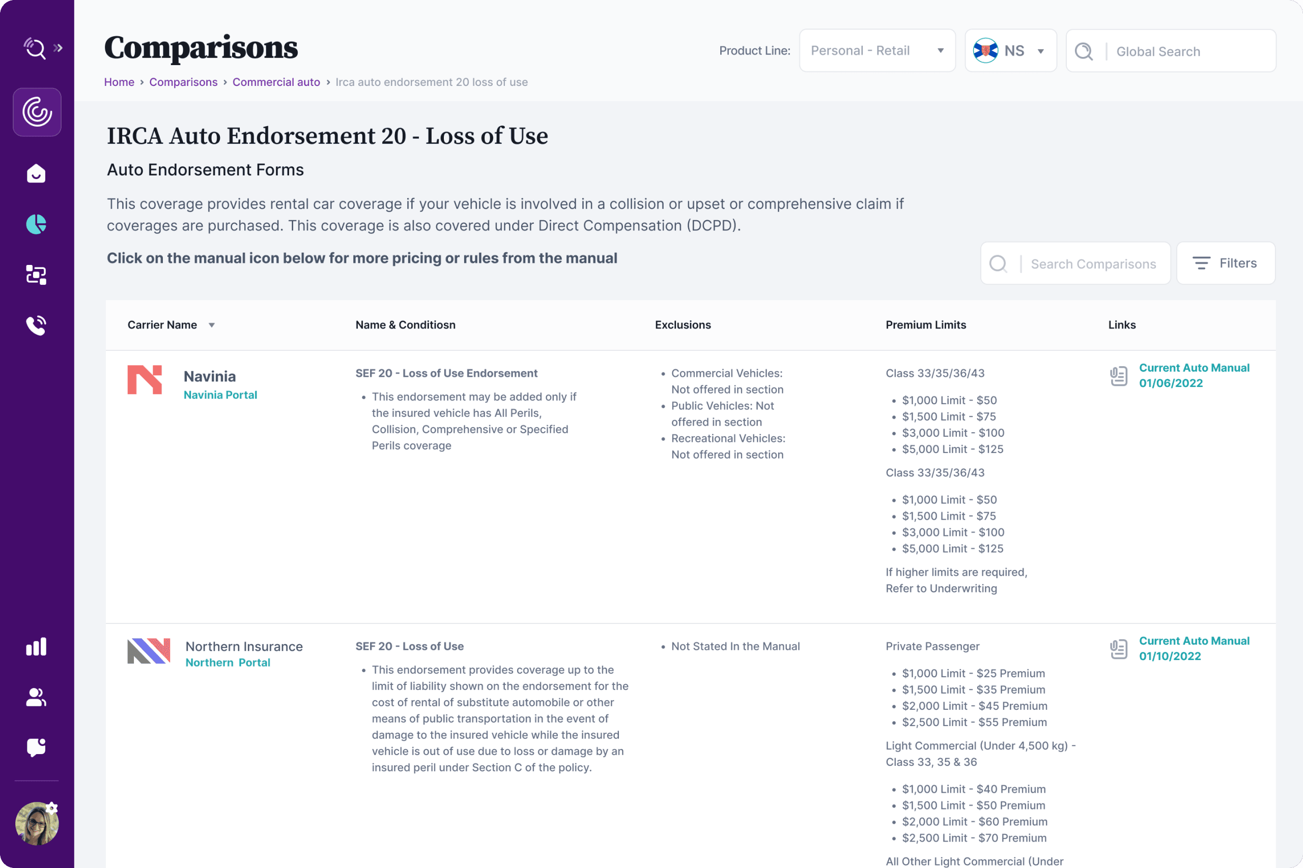 These comparisons are specifically designed for front-line commercial brokers, who often manage a wide variety of coverages and provider-specific rules. By clearly laying out the differences between offerings, the Auto comparisons give brokers instant access to the details they need to confidently present the right options to clients, without having to memorize every guideline or hunt for exceptions.